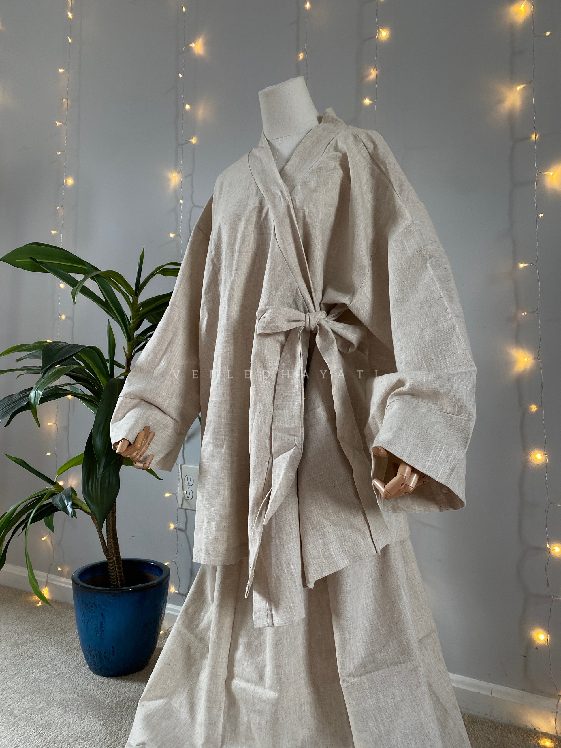A harmonious blend of Japanese Kimono and Korean Hanbok inspirations, this modest top and skirt set is perfect for those who love experiencing the cultural beauty through elegant attire. Designed for daily modest wear, this set combines simplicity and sophistication.