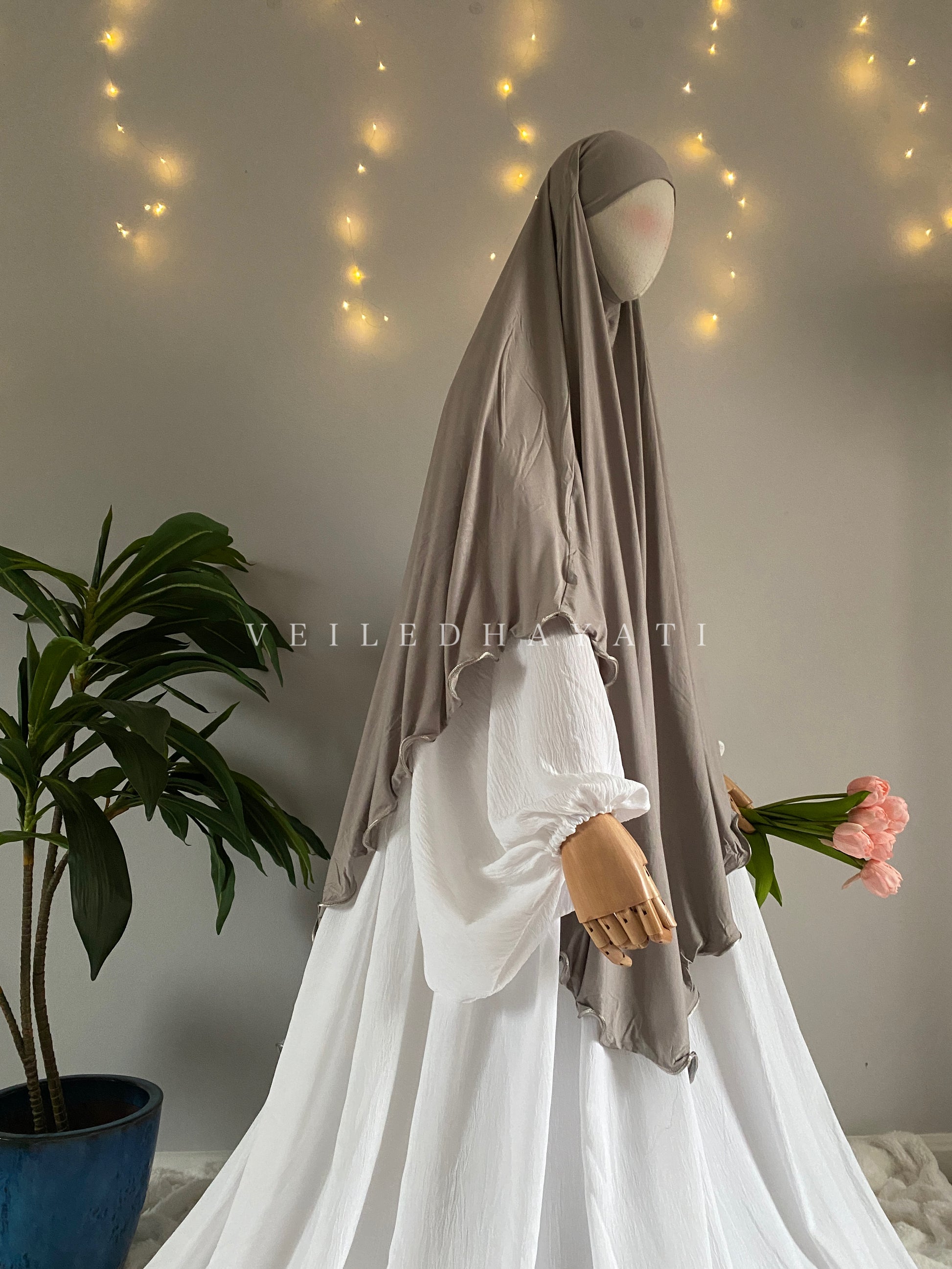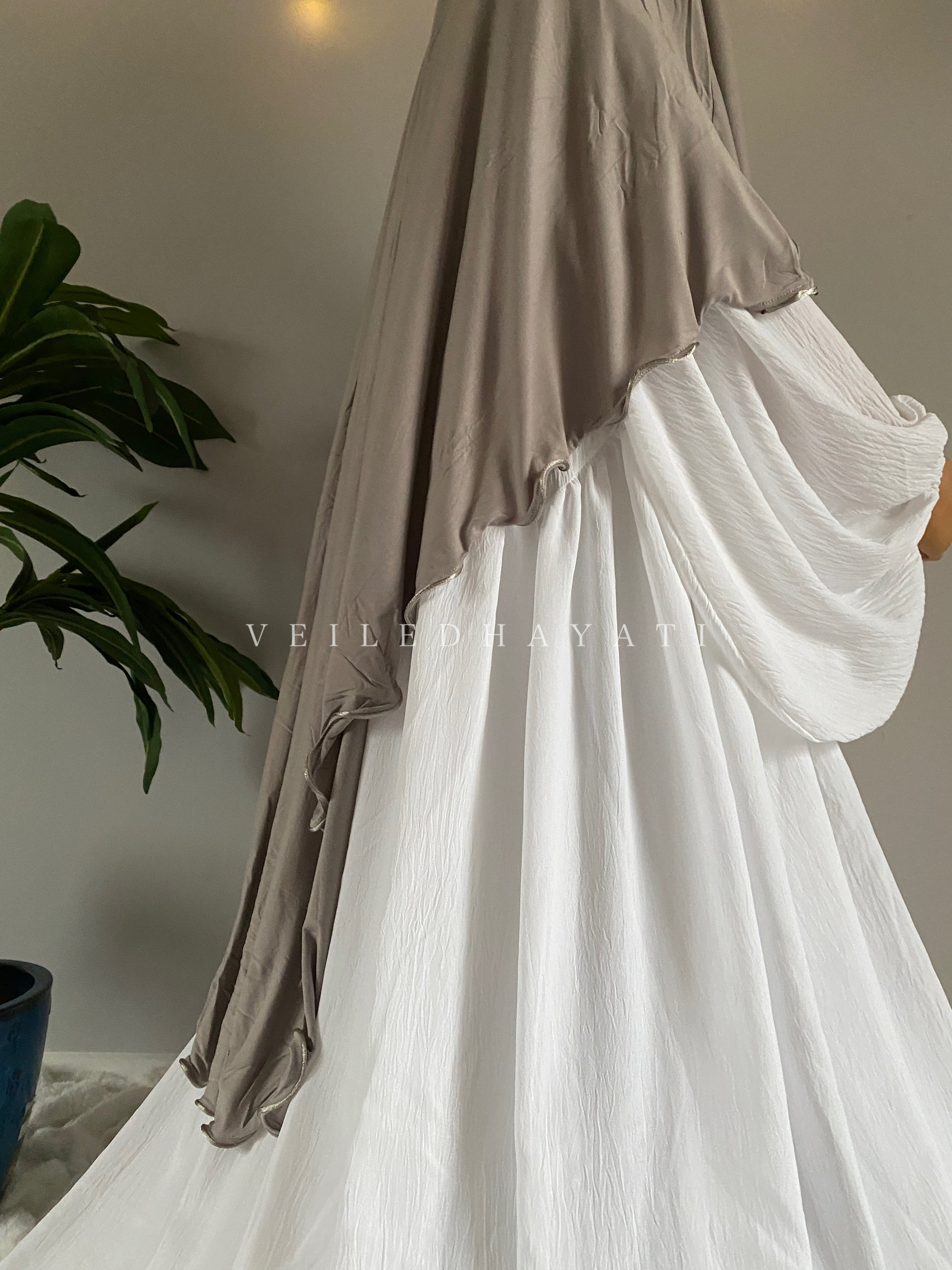 Introducing our beautiful Bambi khimar ~ an elegant collection made of all natural bamboo fibres, proven to prevent any migraines, ear pain, and even hair loss from wearing al~hijab for long periods of time! With 15 beautiful shades, this delicate khimar with a beautiful ruffle hem will help elevate your wardrobe with an essential you didn’t know you needed! In fact, many pieces of this collection were specifically designed for our team members who now wear it daily as their go to khimar for work & errands!