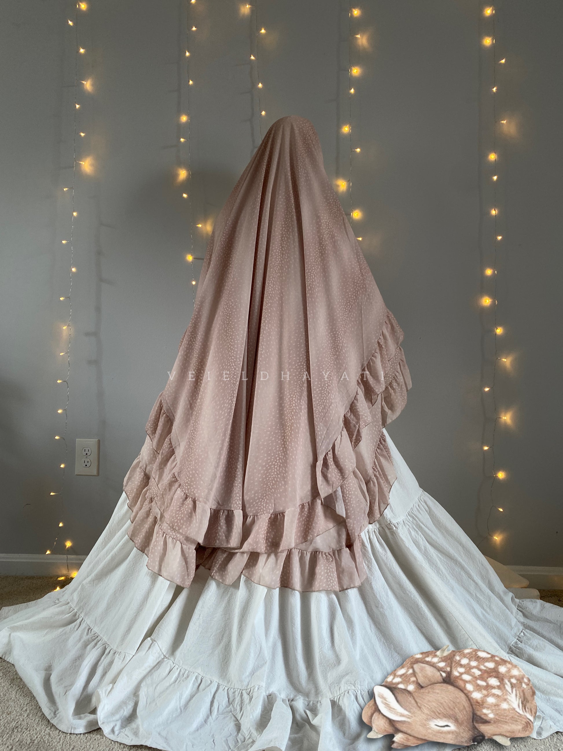 The Fawnette Khimar~ beautifully created for the girlies who carry a soft and shy grace, just like a Deer. With its delicate ruffle hem and sweet fawn print, this elegant khimar was made to bring out that quiet beauty inside you. Once you slip it on, you’ll feel like you’ve stepped into your own gentle fairytale, glowing in your natural elegance.