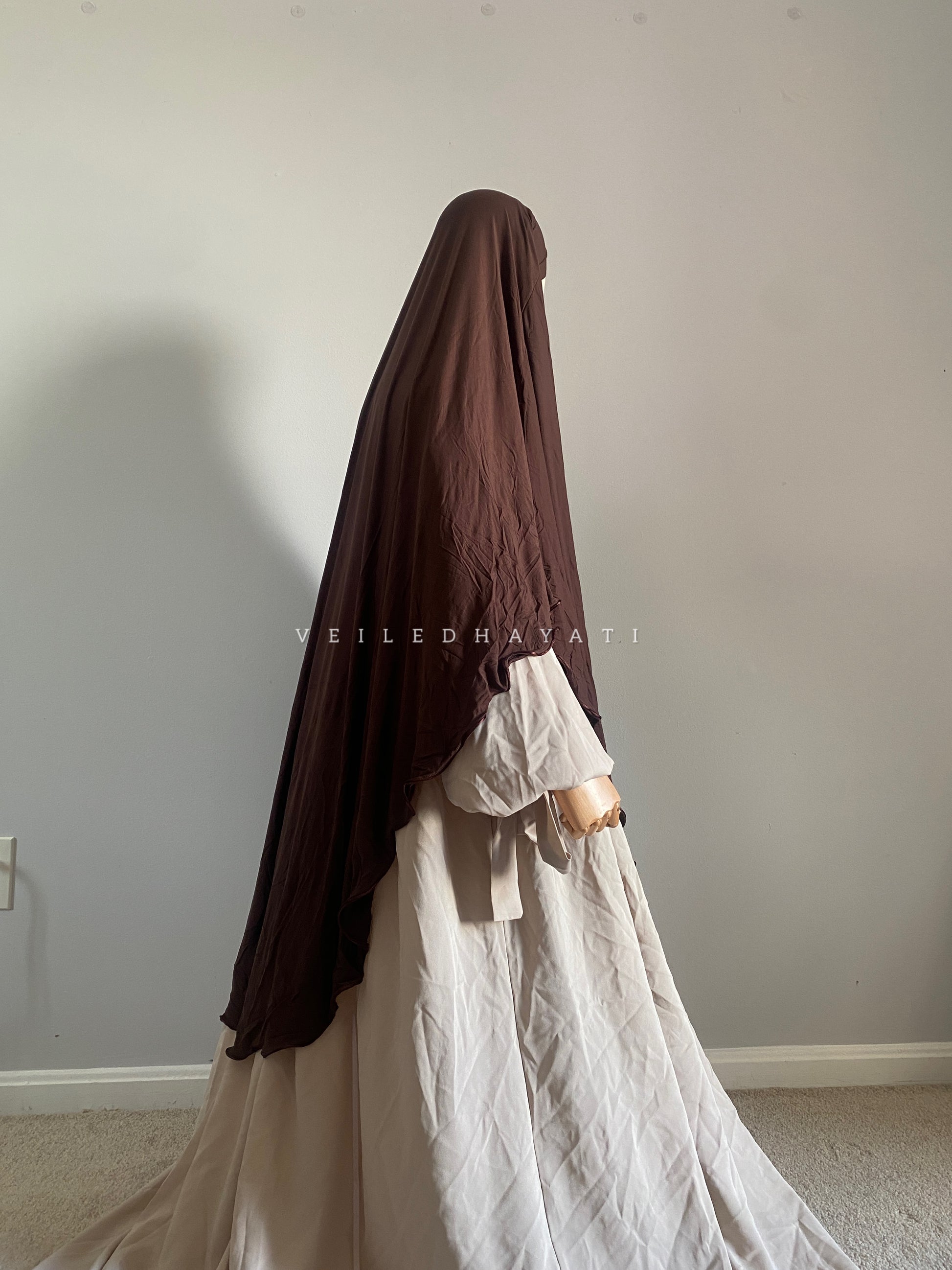 Introducing our beautiful Bambi khimar ~ an elegant collection made of all natural bamboo fibres, proven to prevent any migraines, ear pain, and even hair loss from wearing al~hijab for long periods of time! With 15 beautiful shades, this delicate khimar with a beautiful ruffle hem will help elevate your wardrobe with an essential you didn’t know you needed! In fact, many pieces of this collection were specifically designed for our team members who now wear it daily as their go to khimar for work & errands!