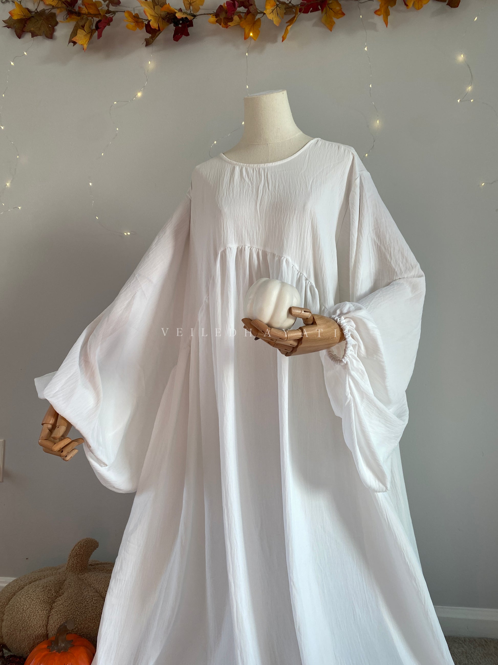Compared to their other products, this one almost seems "too simple" on the website but when you wear it, nothing about it looks ordinary or plain. I felt like a princess, the material is nice and comfy but not too thin, and even though it's white, it's not super see through. Obviously it is a little bit but I've definitely had dresses and abayas that were WAY more see through. My only issue was that even though I didn't size up for it, it was still kinda too long... I usually prefer my abaya to drag on the floor a little, but this is a bit too much, and since it's a white abaya, it also got more dirty than would be necessary. But luckily it's easy to get that tailored, so it's definitely better than it being too short!
